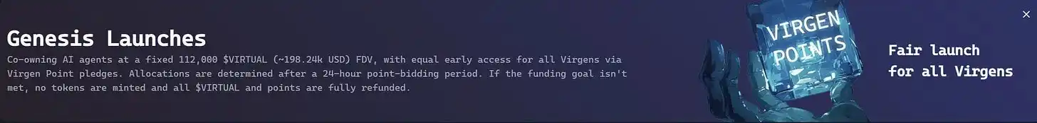 只要项目符合基本要求(像样的白皮书、能说得通的产品概念、团队看起来不太拉垮),基本都能在 Virtuals 的 Genesis Launch 上顺利起飞。