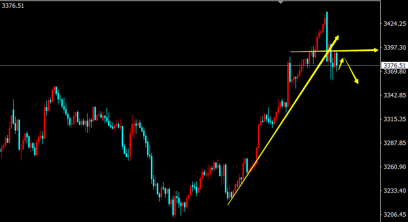 【周三操作】:黄金日内反抽于3388-89附近做空,目标看70-60附近,损00。