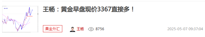 王杨:黄金早盘3367多如期大涨收割,黄金回落还是继续多!