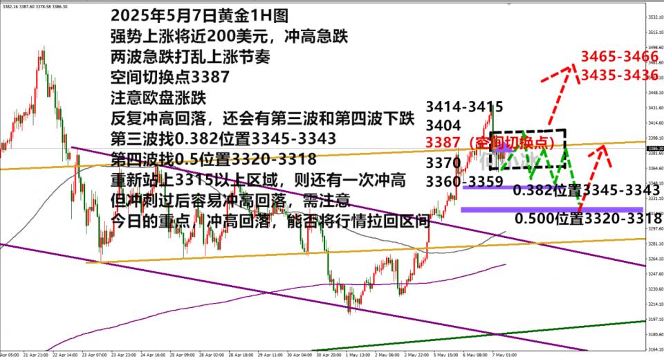 通道上轨位置3387,以此作为空间切换点,刚好上下27美元,往上关注加速起跌点3314-3315,往下关注反复测试的支撑点3360-3359