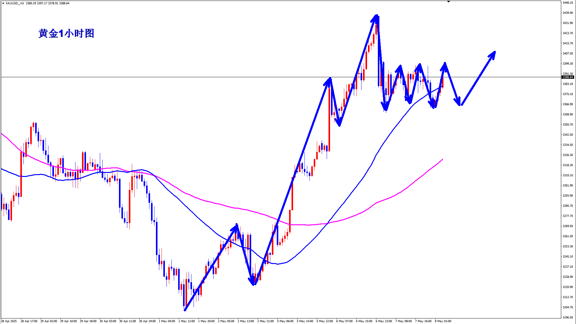 黄金现在趋势还是多,做多就是顺势,黄金回落就是给做多的机会,黄金现在波动大,不要因为一点波动就觉得行情趋势发生了变化,黄金只有跌破3350之后,黄金短期才可能转弱。在没有跌破3350之前,黄金还是保持震荡向上的多头趋势。