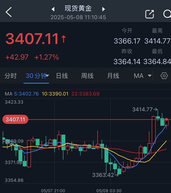 北京时间11:10,现货黄金报3407.11美元/盎司。
