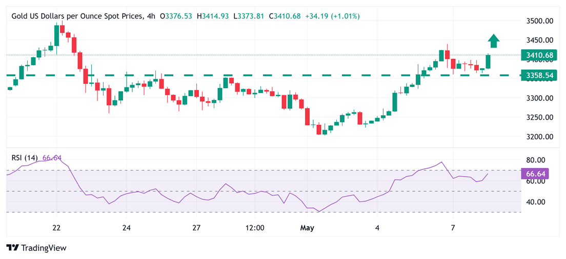 24K99讯 周四(5月8日)亚市盘中,现货黄金在上一交易日暴跌后突然大幅攀升,目前金价位于3407美元/盎司附近,日内暴涨近43美元。FXStreet分析师Haresh Menghani周四最新撰文,对金价技术走势进行分析。