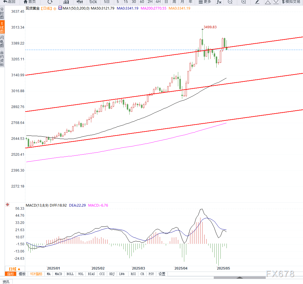 与此同时,美国总统特朗普表示,并不急于签署任何与亚洲大国的贸易协议,也不会主动降低现有145%的惩罚性关税。这一表态令市场对本周末瑞士会谈的成果预期转趋谨慎,避险情绪再度升温,令黄金跌势有所放缓。