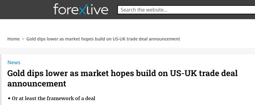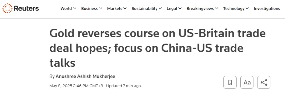 财经网站Forexlive分析师Justin Low指出,因市场对美英宣布贸易协议、或者至少达成协议框架的预期升温,金价转为下跌。