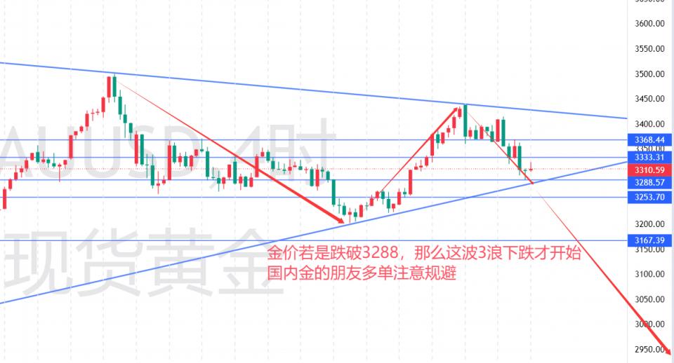 昨天策略3360空单看到3292完美止盈,跟上的朋友应该也是拿上68个点利润。现在金价从高位运行到收敛区间下轨上方轻微反弹,分析三角收敛区间没有破位,理应是在下方看一波反弹,但鉴于金价自高位走跌,现在做多也是极短线。