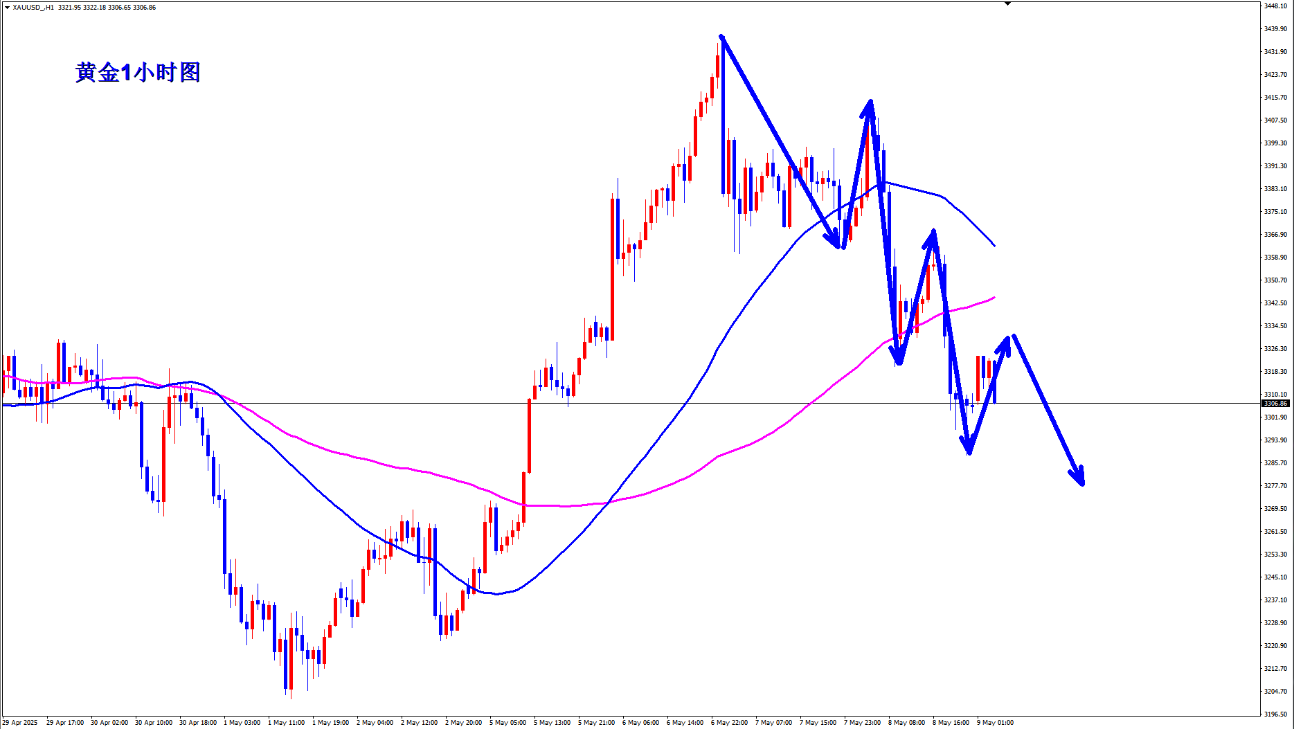 黄金1小时均线已经开始向下拐头,黄金如果均线如果向下发散形成死叉,那么黄金空头动能就会增加,那么黄金向下的空间就还会打开,黄金昨天探底3288一线之后,黄金反弹两次承压3325回落下跌,那么黄金早盘反弹3325承压还是可以继续空,黄金短期可能承压3325震荡下跌为主。