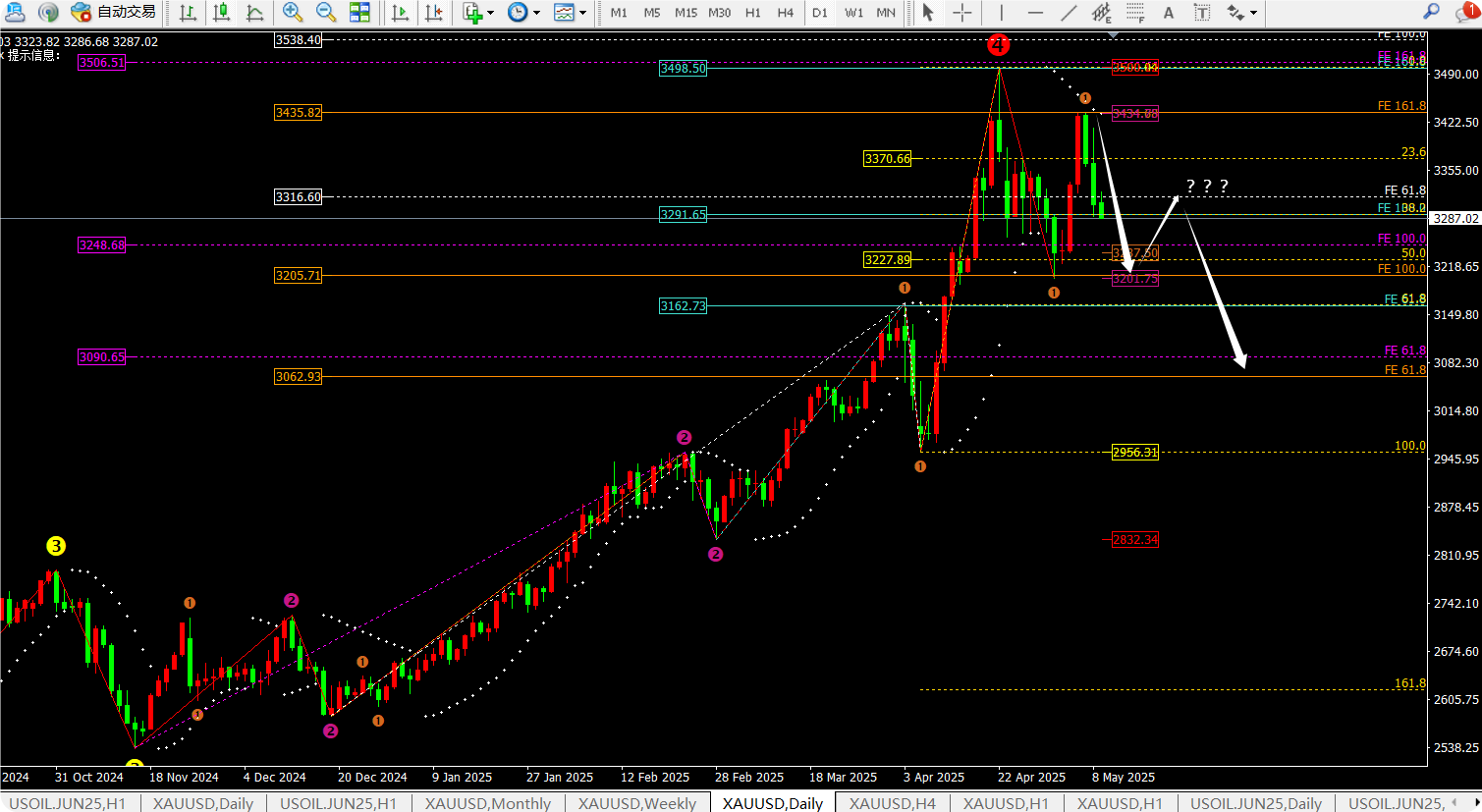 从昨日下跌3360之后的走势看:目前上方3362-72是有反弹的。那么3330和3345就是日线级别很好的做空点位。而昨日凌晨价格反弹的点是3310一线,目前价格下跌所以该位置附近是第一阻力点。