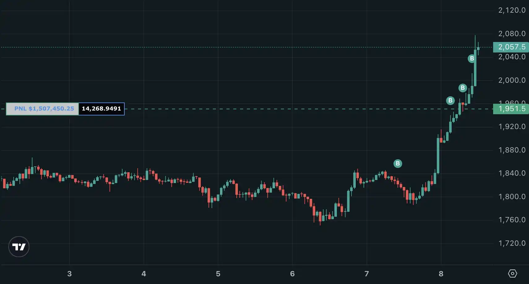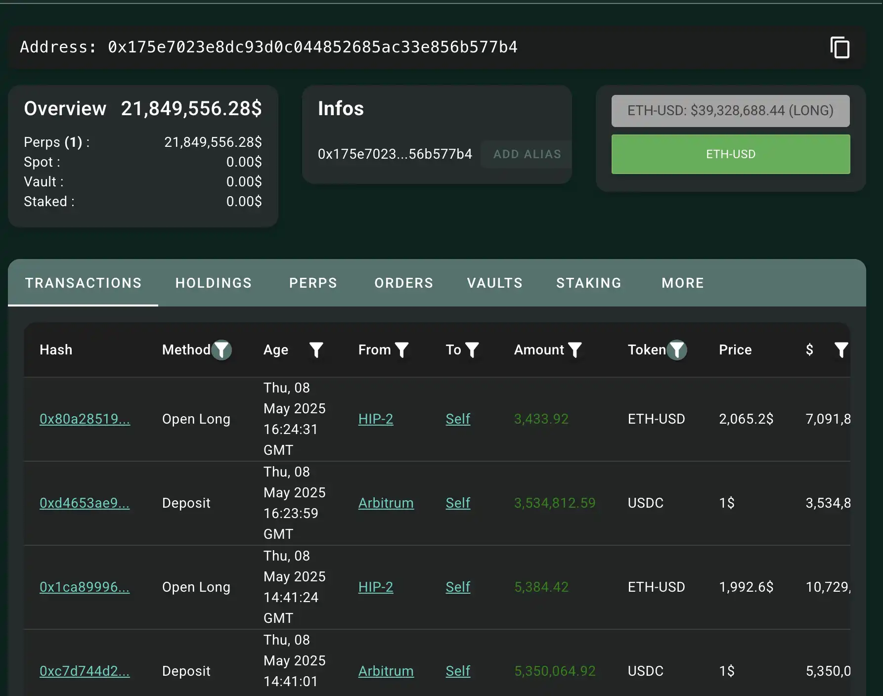 而根据 Arkham 报道,一个链上地址「0x175e7023e8Dc93D0c044852685ac33e856B577b4」从与 Zixipay 关联的钱包中收到了价值 1000 万美元的 USDT 后于美英贸易协定宣布时杠杆做多 ETH,并在 ETH 本次上涨中多次开多。