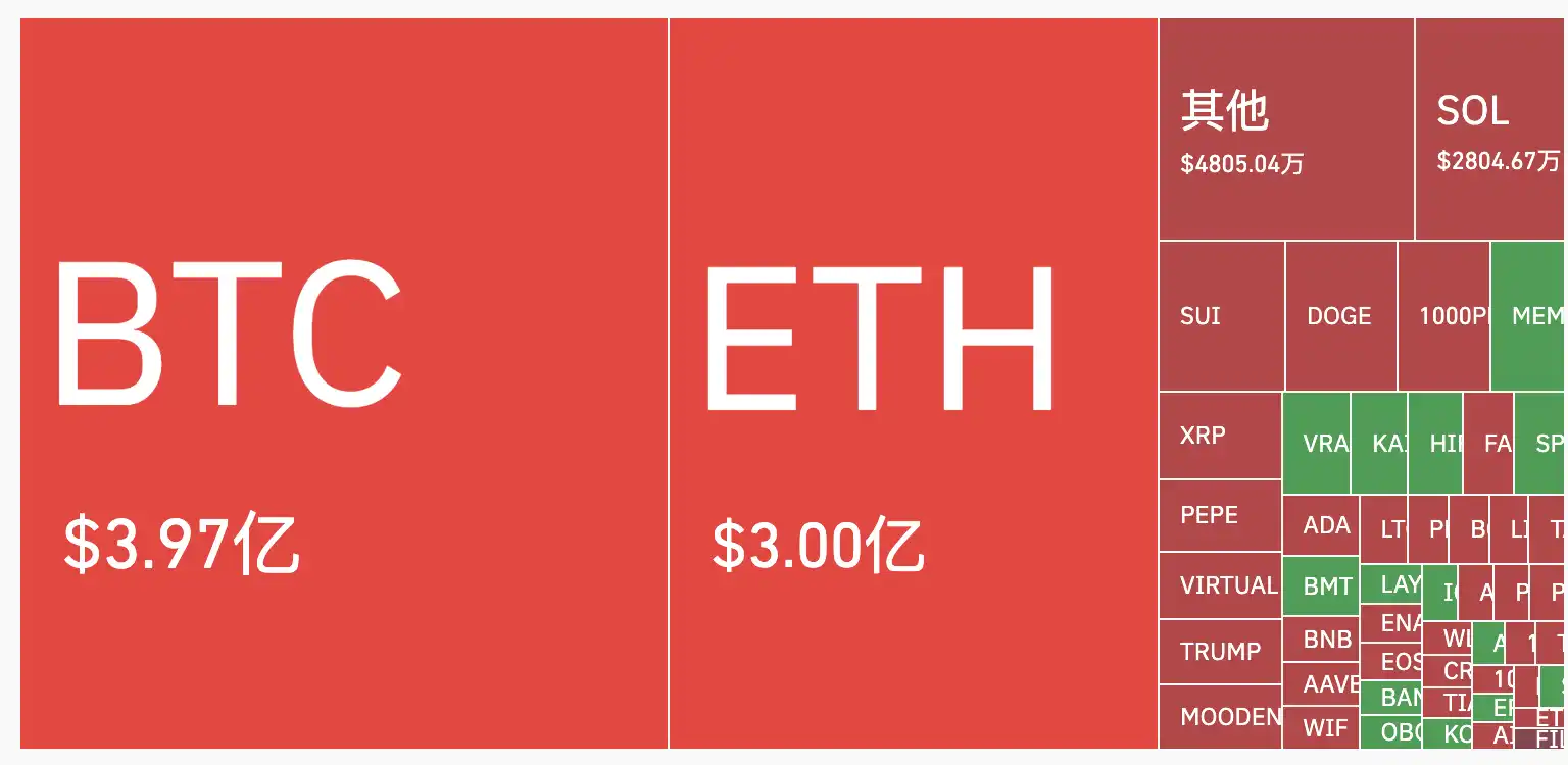 过去 24 小时,全球有 20 万人被爆仓,其中 BTC、ETH 空军损失惨重,给本次上涨的多军做了金额巨大的燃料,一天之内烧掉了共 6.79 亿美元,而最大单笔爆仓单发生在 Binance 的 BTCUSDT 交易对,价值 1196.92 万美元。
