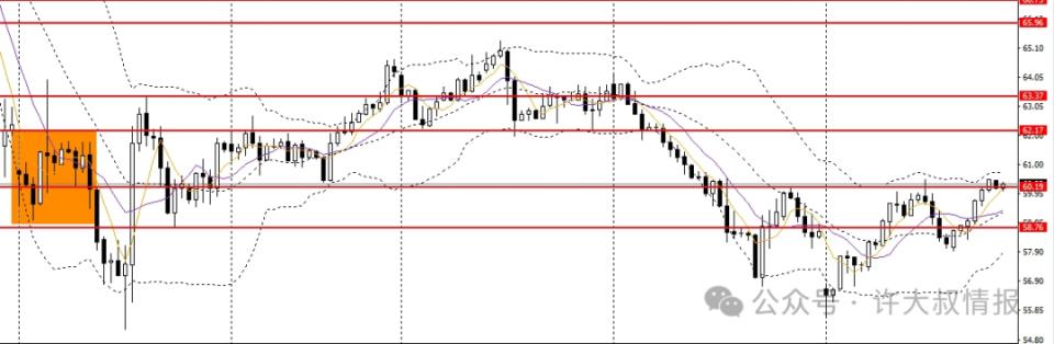 美原油日线呈多方炮,再度上探60一线压力,日线RSI回升,多单仍可持有,如彻底站上60,可继续看多至62附近,如无法有效上破,多单可离场。