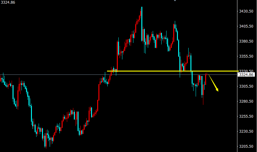 【周五操作】:黄金日内先反抽于3338-40附近做空,目标看3310-00附近,损3350。