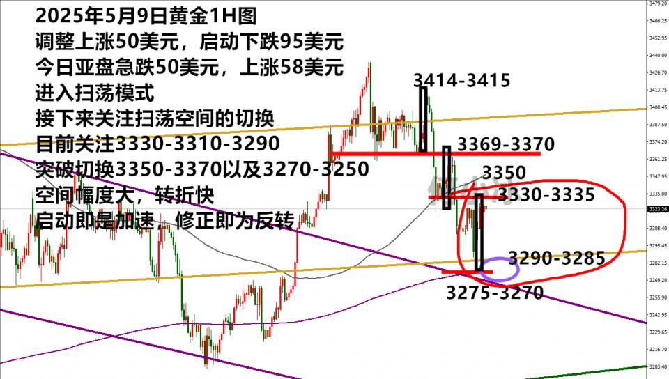 至于接下来的看法,我们选择继续定义区间扫荡,预留空间40美元左右,毕竟本周大起大落来来回那么多次了,今日上午就一来一回两个50美元空间,后面的行情陷入扫荡空间也是正常的情况