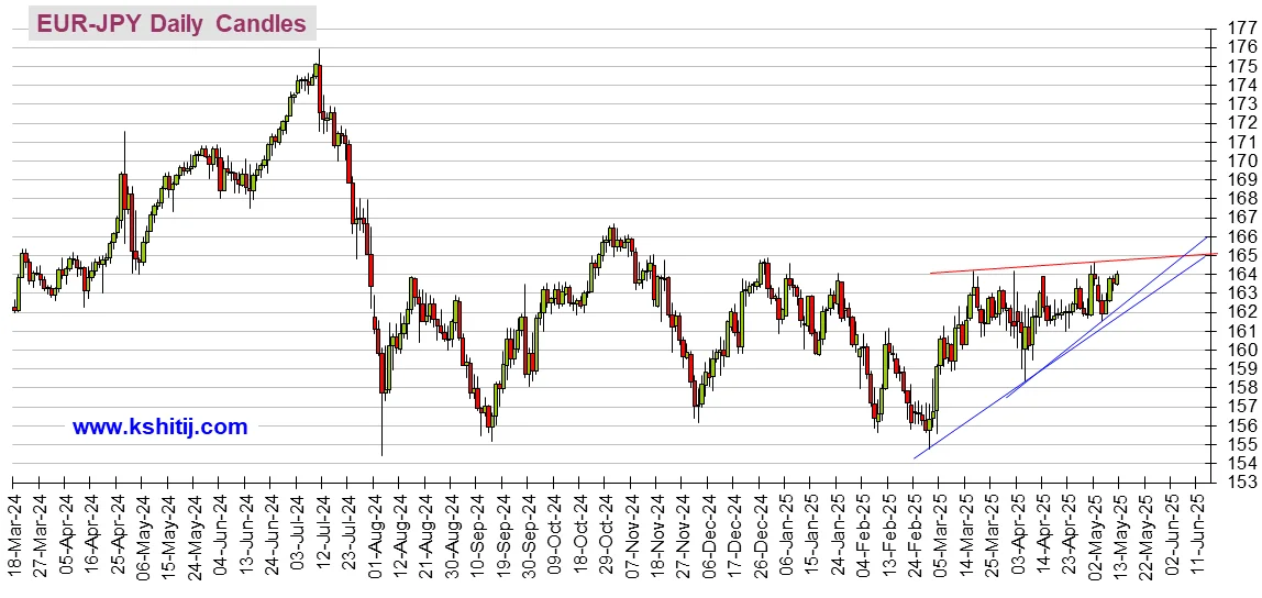 欧元/日元在160-164/65区间内走高。需要朝区间任何一端实现决定性的突破,以进一步明确走势方向。