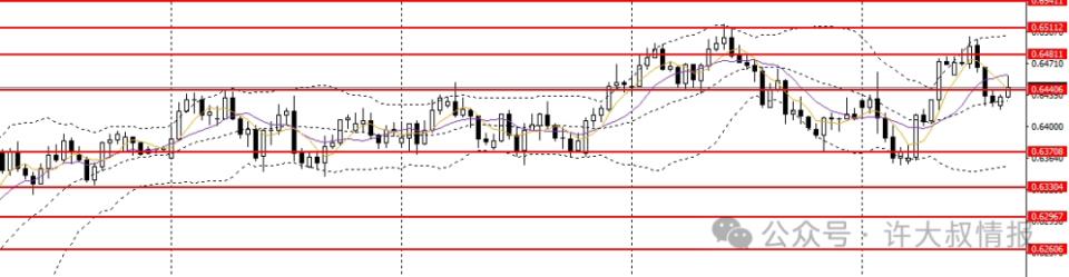澳美收流星阴线,回踩5日均线,日线RSI小幅回落,0.65附近面临强压,短线仍趋于震荡,可延续0.6370-0.65区间内高抛低吸的思路。
