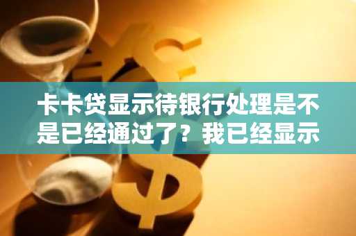卡卡贷显示待银行处理是不是已经通过了?我已经显示这个界面一天多了。 更新时间:2025-05-15 15:59:57 •阅读 0 卡卡贷显示待银行处理不一定是指通过了贷款申请的,这一步只是说明了放款银行已经受理了你提交的申请,但还需要审查你的个人信用情况和资料,审核通过后才可以给你的账户放款的,如果没有通过是会拒绝你的申请的。卡卡贷的贷款申请还是要看银行处理的,所以下款的速度比较慢。这个过程一般会在3个工作日左右,如果超过了这个期限,你可以打卡卡贷的客服进行咨询。