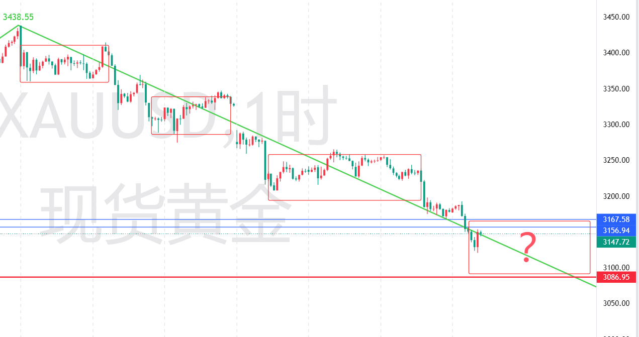 短线级别最后一波下跌,途中已经经过数次震荡调整,现在金价在3120附近再次出现反弹,反弹最高到达3153,我也在途中给予部分人继续做空的提示。现在主要对小时线做个简短的分析,金价在大跌之后一定是需要去修复的,一种是震荡调整修复,另一种是反弹修复,在这种极限下跌的走势下,黄金不具备反弹的条件,所以3120这里的反弹秦氏金升觉得只是部分空单选择获利抛盘导致,所以后市还是会继续下跌。