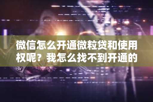 微信怎么开通微粒贷和使用权呢?我怎么找不到开通的窗口。 更新时间:2025-05-15 17:00:02 •阅读 0 微粒贷现在是处于邀请机制下的内测阶段,用户满足条件后会被官方邀请进行开通,开通的条件如下: 1、绑定实名认证的信用卡和手机号码,且信用卡最好有最近6期的还款记录。 2、经常性的在微信或者QQ中购买一些理财产品,让微众银行判定你为多余资金的用户。 3、有固定的住址,且在腾讯软件中填写统一的地址。 4、多参加腾讯的公益活动,让系统认为你是一个有爱心的人。