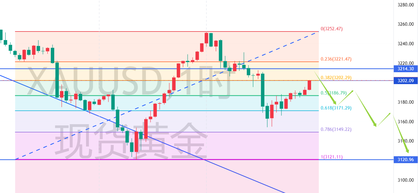 小时级别走势方面,尽管周四金价在3120美元/盎司低点展开反弹,累计涨幅超过100美元,但周五金价有效跌破618分割位的 3171 美元/盎司关键价位,这一技术信号表明空头力量仍占据主导地位,后市金价继续下行仍存在较大可能性。