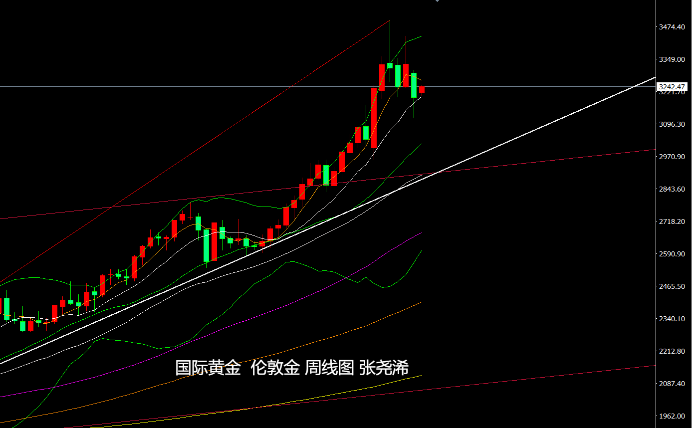 相对于前周收盘价3328.85美元,周振幅208.12美元,收跌130.07美元,跌幅3.91%。