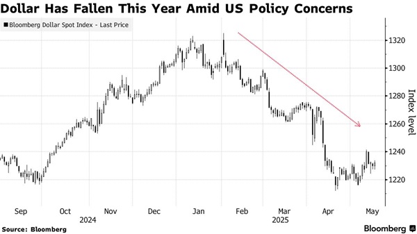 彭博社指出,由于对美国国债和美国借贷轨迹的财政担忧加剧,周一亚市早盘美元走低,美国股指期货下滑。