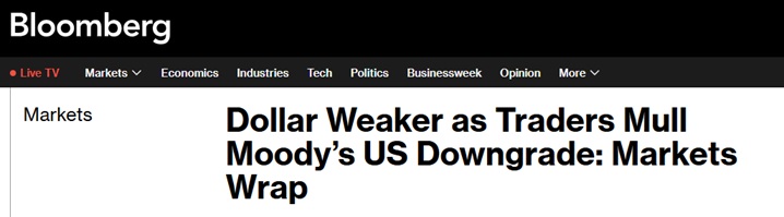 分析师指出,上周五穆迪(Moody’s Ratings)突然下调美国主权评级,这一“黑天鹅”事件引发外界对美国财政状况的担忧,由此引发的避险买盘刺激金价走强。