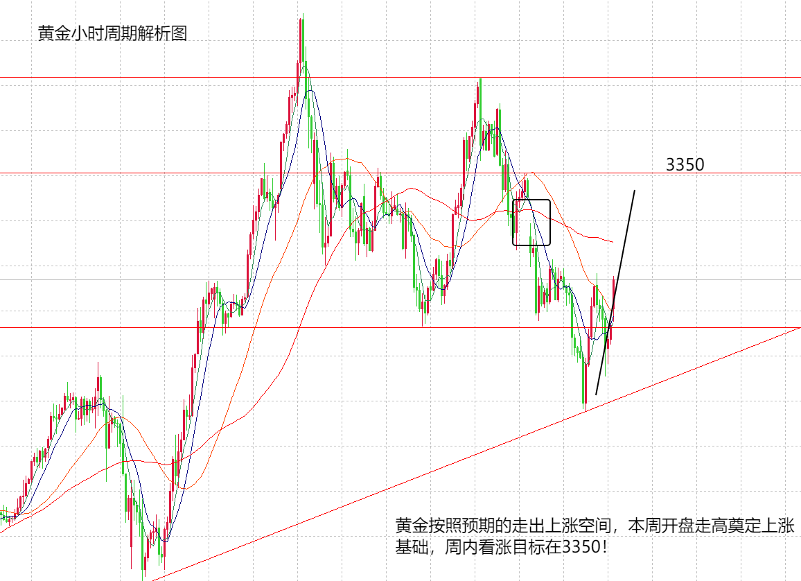 由于近期市场不确定因素较多,黄金出现暴涨暴跌的走势较大,很多人就被干扰了对黄金大周期,大趋势的判断,看到涨了就看大涨,看到跌了就看大跌,无法坚定主思路,住方向。这个周期山海非常明显,并且坚信黄金大周期还是多头趋势,未来还有较大的上涨空间,不要因为跌了一点就绝对黄金能出现趋势性的转变,只要是下跌,把握低点做多就是给我们布局多单的机会。所以,在上周黄金跌至3120后,山海明确提示大家,可以抄底做多看涨黄金,从上周的收盘和早上开盘来看,黄金的底部基础非常牢固,本周黄金会修补上周的跳空窗口,看涨至3325,3350之上。因此,本周黄金坚决看涨,耐心等待上周趋势空间。白银同样维持看涨需求,周期的空间看至33,或者33.5之上。国内期货方面,沪金,沪银,融通金保持看涨趋势,做各自的多单交易即可。