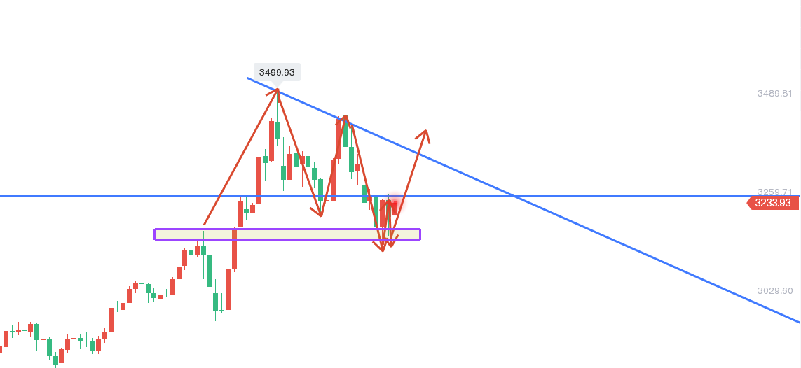 黄金回踩3222附近多,防守3215,目标看3240/50一线,破位看3260/70,中线多单突破3260顺势加多继续看3300上方
