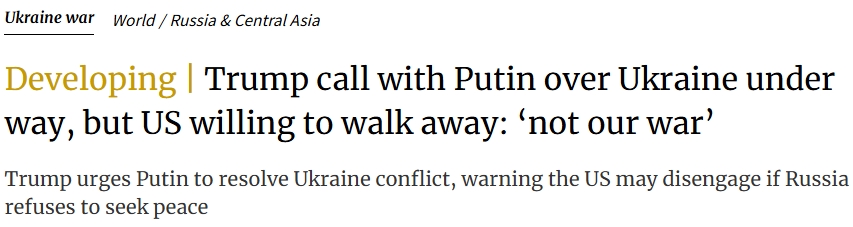 通话前不久,美国副总统万斯(JD Vance)告诉记者,美国意识到结束战争陷入僵局,如果莫斯科不愿意参与,那么最终美国将不得不承认这不是美国的战争。