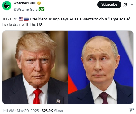 特朗普还表示,乌克兰也可能从与美国达成的潜在贸易协议中受益。他甚至还补充说,以新教皇为代表的梵蒂冈将愿意主持贸易/停火谈判。