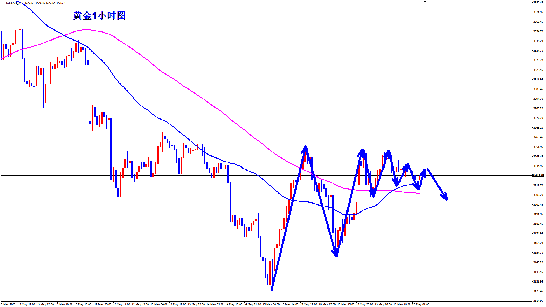 黄金1小时均线虽然上穿,不过向上的力度并不是很强,黄金早盘如果承压3250下还是可以继续空,黄金反弹高点还在以前降低,黄金昨天美盘二次反弹3235附近就开始回落,那么黄金早盘首先关注3235附近承压下都可以逢高空,黄金现价3227附近可以先空起来。