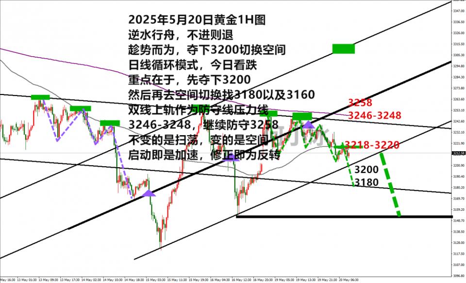 反之,继续扫荡,重新回到双线区间内,下一个阻力还是3246-3248,超幅度3258,重新回到扫荡区间内