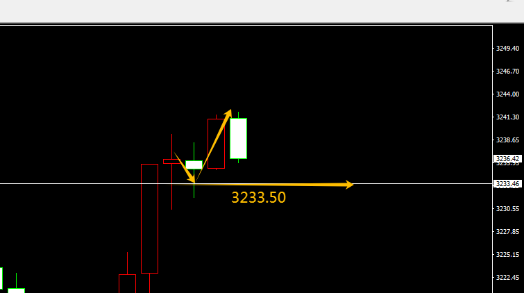 今日建议:黄金3233.50区域做多,止损3229.00(盈亏比达到1:1设置保本止损。追求高胜率为75点。波段移动止损保护现有利润持有到止盈)