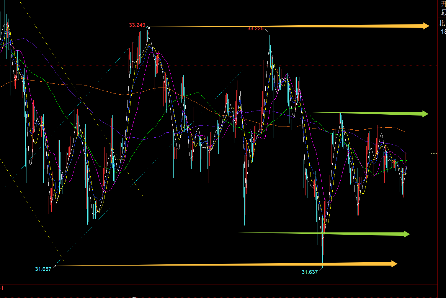 第二,白银方面: 31.65-33.25区间运行了太长时间,但始终无法突破,继续等待;