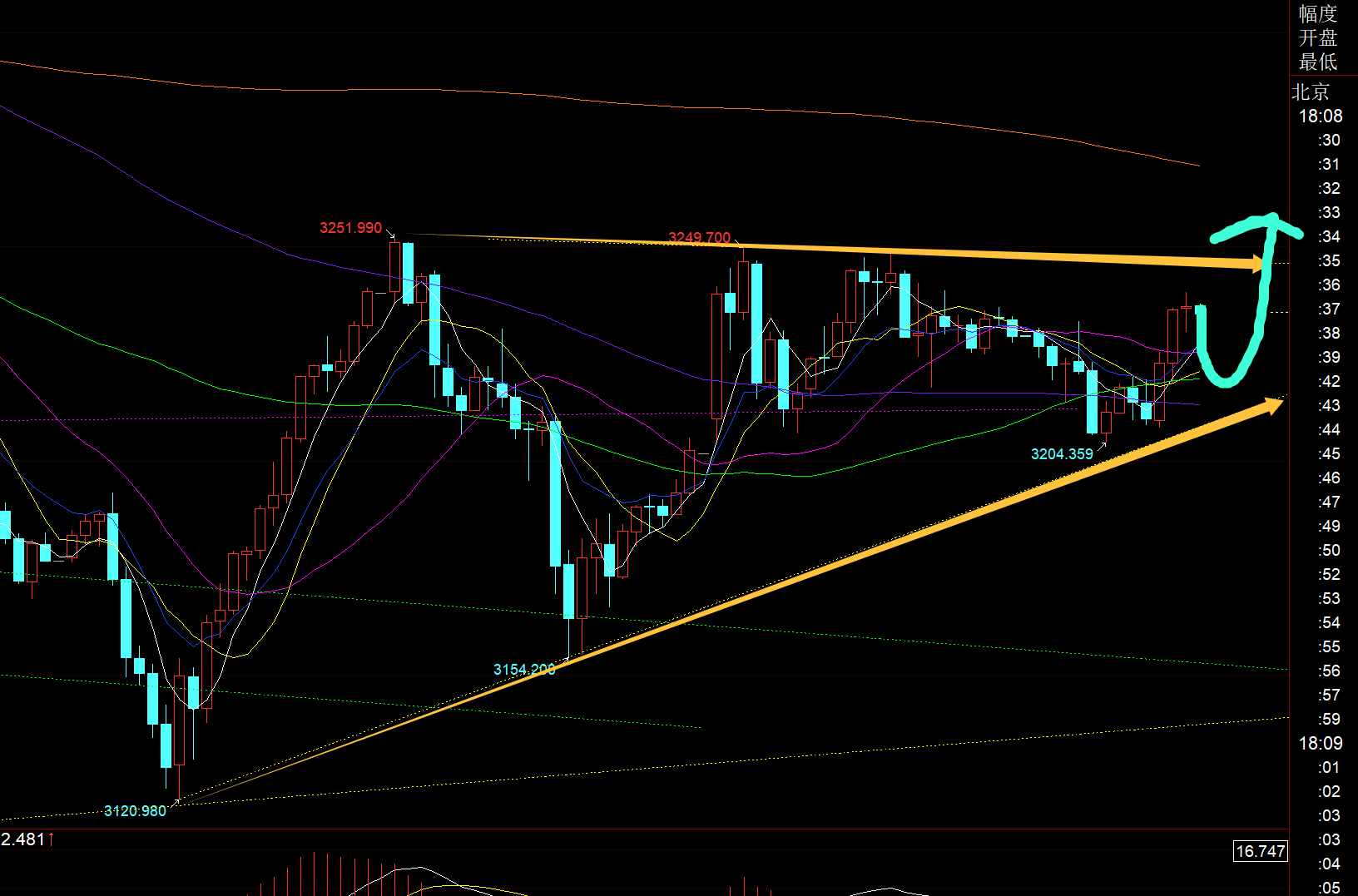 第一,黄金方面:昨日先依托3210支撑逢低继续看涨,3230上加仓看涨,全都成功拿下,一度拉升至3250一线高位; 由于震荡低点一路抬升,美盘前两次支撑3233探底拉升,则美盘依托3241继续看涨,但可惜离目标差3美金,最终破3233出局;尾盘计划3210上继续看涨,但差几美金再次踏空,好不容易等待半夜3点阳包阴,15分钟站上中轨,但收盘前又掉头转向,并未延续;
