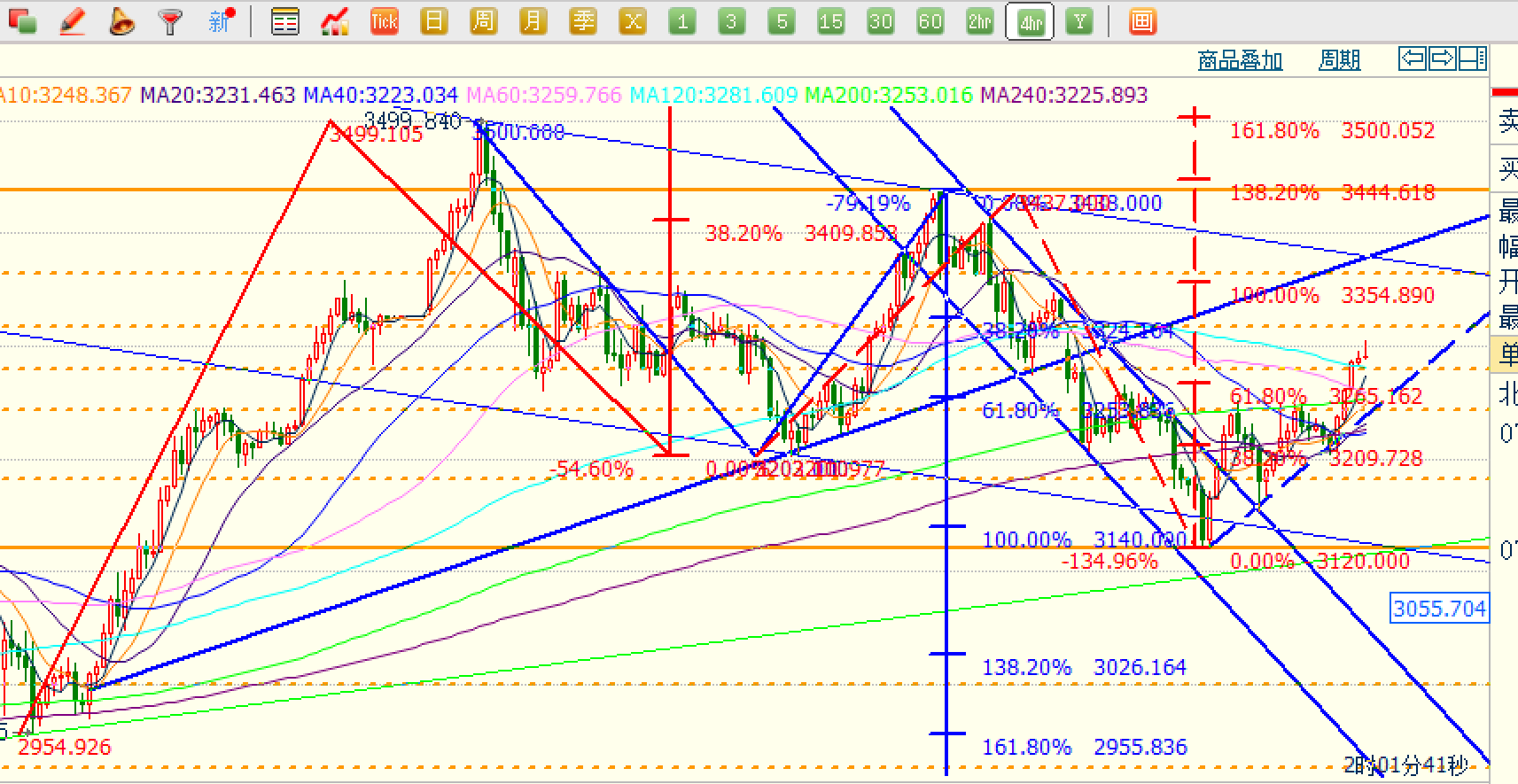 昨日行情运行符合我们3200不破看涨预期,昨天早盘看3240压制先回落,最终3232一线回落,没到空单位置,早盘空就没做。调整下来后,依托3200关口,在3209布局了多单,因为我们看好欧盘上涨,最终欧盘上涨,成功抵达3250并迎来了突破。只是美盘时段,昨天太困9点多点就休息了,错过了3250-52突破后多单的补仓机会;当前手里有底部3152-55多单,继续持有3152-55区域多单,计划200美元左右利润咱们出局。