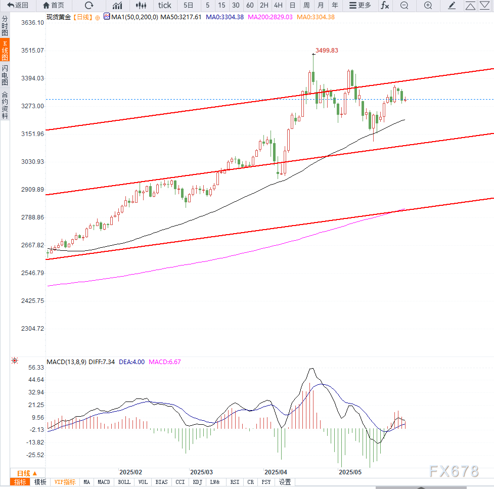 特朗普推迟对欧盟征收50%关税至7月9日,短期内增强了风险偏好情绪,削弱了黄金避险需求。不过,贸易政策仍存在重大不确定性,加上美国财政状况持续恶化以及地缘政治风险持续,为金价提供部分支撑。