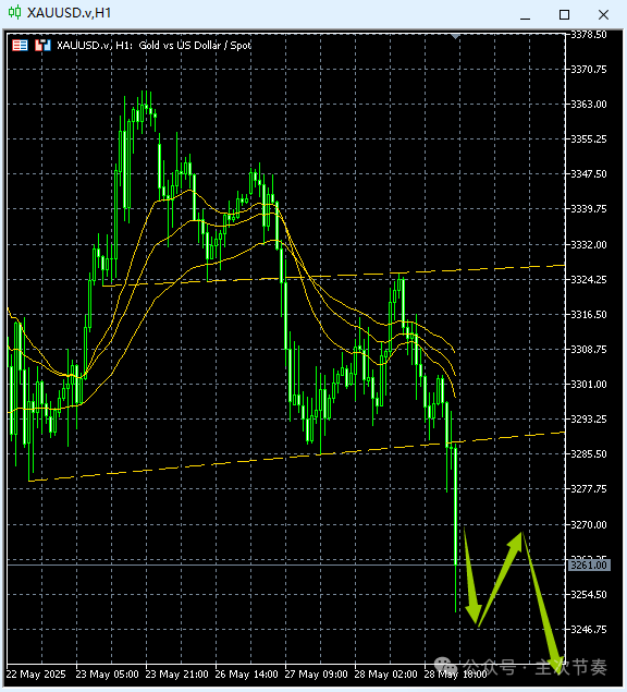 日图;金价目前反弹在如期触及3500美元而下的回落趋势压力后,连续走低调整,目前也已跌至短期均线下方运行,这暗示调整力度加大,将进一步等待再度回踩上升趋势线支撑及60日均线支撑附近后,再度看涨入场。
