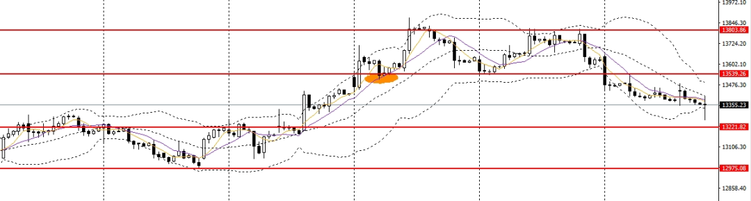 A50延续阴跌,仍承压于5日均线,4小时逼近13200一线支撑,空单可继续持有,如失守13200,可下看至13000关口附近。
