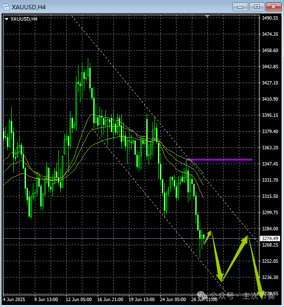 4小时图:3-5天走势预期截图时间:2025.6.29客观趋势:跌