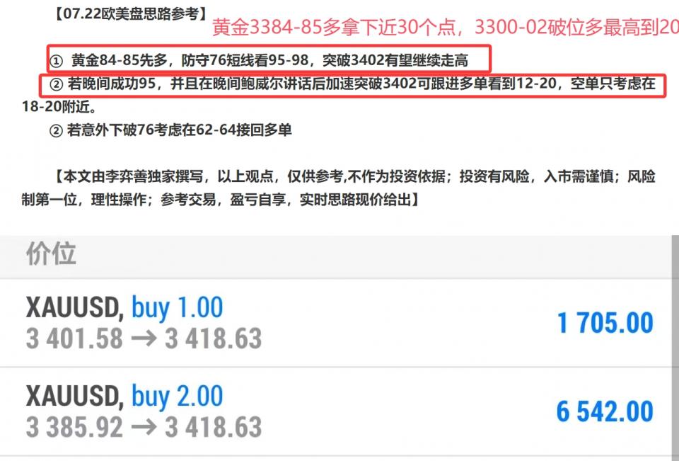 李弈善:3384多拿下近30个点,晚间谨慎接空!