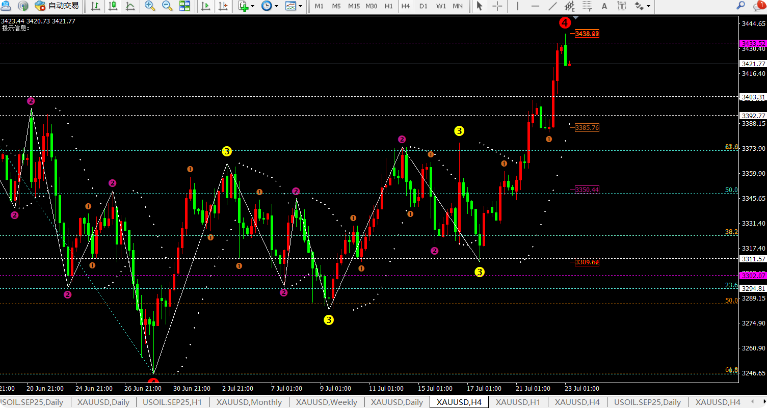 任天成:7.23黄金中线空就看3451一线今日白盘震荡回落