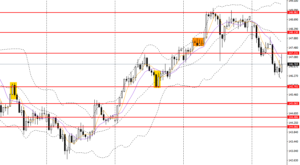 美日继续阴跌,回踩日线布林中轨,日线RSI跌至50左右,4小时一度逼近146大关,短线趋势偏弱,如再度于147-147.20一带承压可进空。