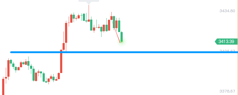 市场也会变得更加谨慎,所以高位不建议过分去追涨,日内提示大家在34328/30一线做空,欧盘前也是给到多次机会,目前回踩最低3412附近空单兑现到了目标位,有参与的朋友注意及时保护利润,接多的位置还是建议在3406附近,耐心等待一下回踩的机会,中间位置尽量就多看少动!