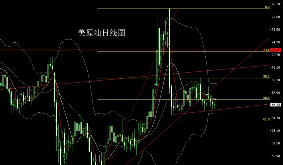 美原油市场昨日开盘在66.42的位置后行情小幅拉升给出66.72的日线高点后行情展开回落,日线最低给到了65.66的位置后行情受到本轮趋势线支撑和基本面利多因素影响拉升,日线最终收线在了66.38的位置后,日线以一根下影线很长的启明星形态收尾后,今日回踩延续多,点位上,昨日65.9的欧减仓后止损依旧在65.6,今日66多止损65.6,目标看66.5和67和67.3和67.6.