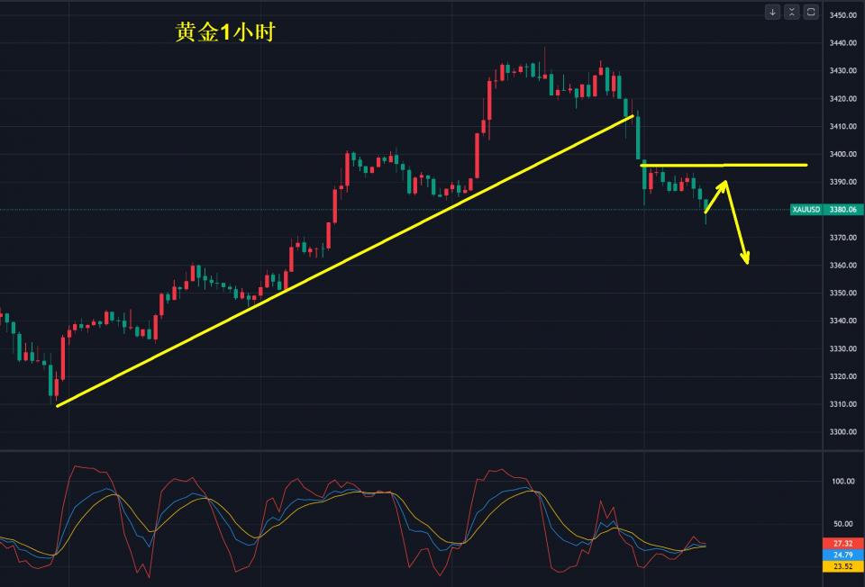 周三,黄金重回3400美元之后终于看到解套的希望,不少朋友在犹豫到底是解套离场还是再等等吃点利润,还没考虑明白金价又遭遇滑铁卢,3400美元上方“一日游”,早盘冲击3438美元后回落破位3425美元起涨点,欧盘反弹不破新高,美盘加速倒车。