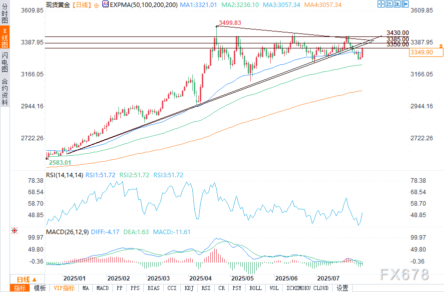 北京时间23:28,现货黄金报3349.10美元/盎司,涨幅1.80%。