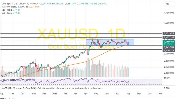24K99讯 黄金价格上周五(8月1日)惊人暴涨逾2%,原因是美国7月非农就业数据远不及预期,提高美联储降息的机率,而且美国总统特朗普新一波关税声明,让避险需求水涨船高。知名财经网站FXDailyReport分析师Nicholas Kitonyi撰文,对黄金后市走势进行分析。