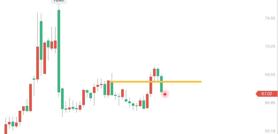 原油反弹67.7附近空,防守67.5,看66/65下方