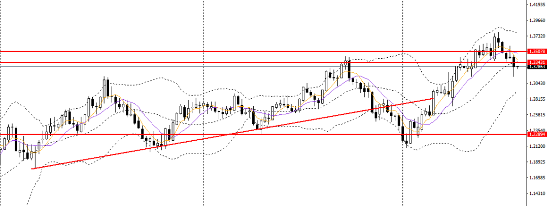 欧美上周收阴,刺破10周均线,RSI小幅走低,波段大概率将维持震荡上行。周五强势拉涨,日线呈平头底部,站上5日均线,日线RSI升至50左右,1.1560上方可延续低多思路,如升破1.16,可上看至1.1630。